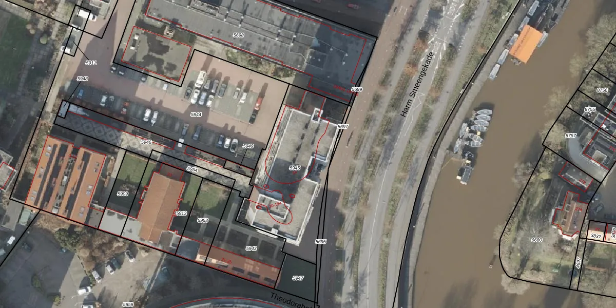 Harm Smeengekade 50 is gelegen op kadastraal perceel ZLE00E5945. Deze kadastrale aanduiding is uniek en wordt gebruikt door het Kadaster om eigendomsrechten en andere zakelijke rechten vast te leggen. Het perceel maakt onderdeel uit van de kadastrale gemeente Zwolle.