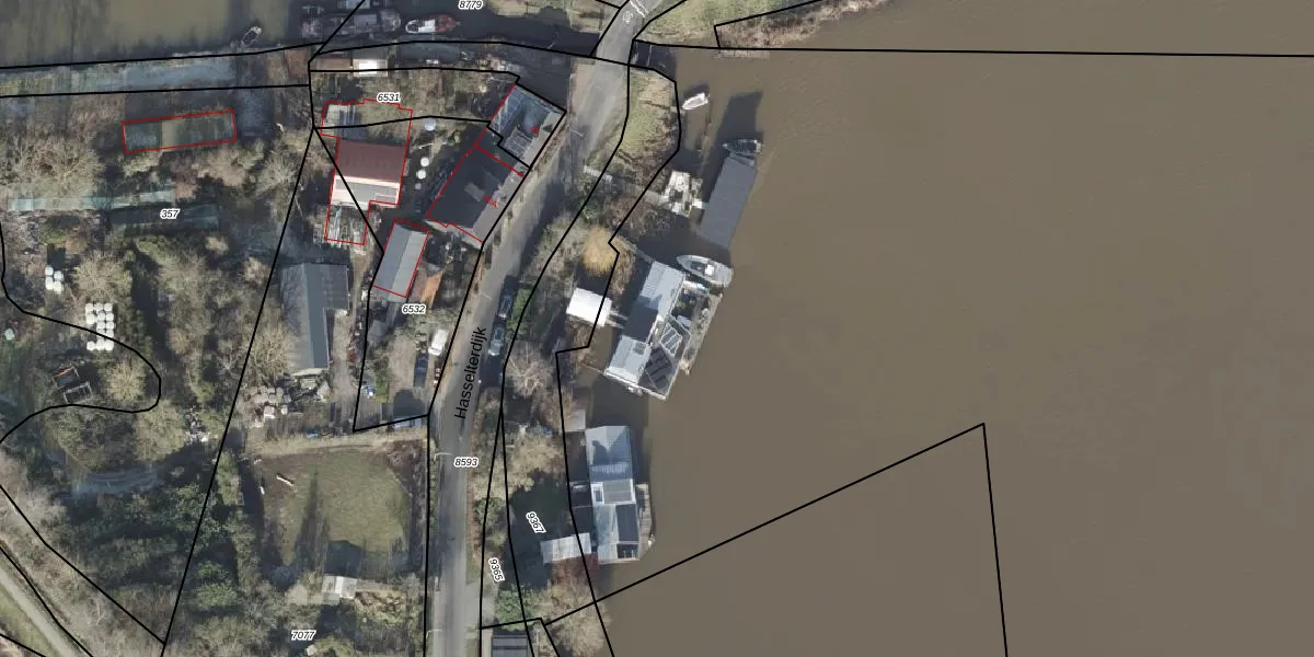 Het perceel waarop Hasselterdijk 38-D staat heeft een oppervlakte van 3,3 ha. Dit is een zeer groot perceel. De perceeloppervlakte wordt geregistreerd door het Kadaster. Gedetailleerde informatie over de maten van dit perceel kunt u vinden in het rapport Kadastrale kaart met maatvoering van Hasselterdijk 38-D.
