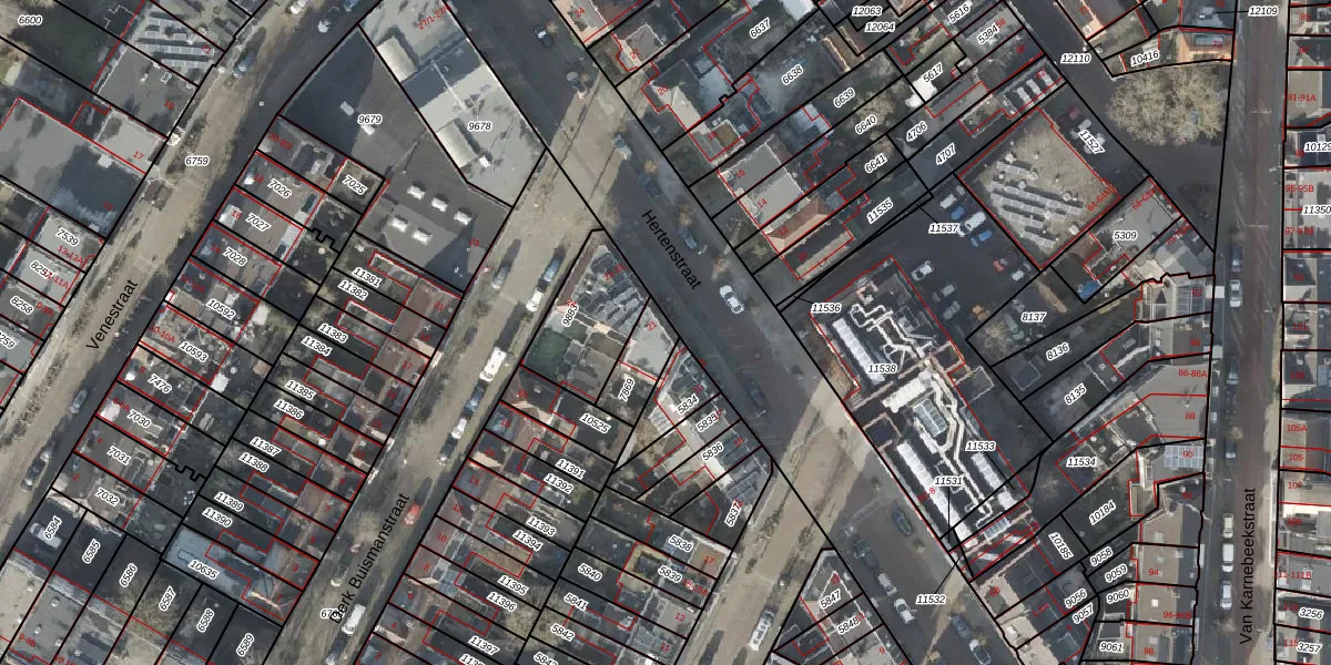 Gebruik de zoekbalk of klik op een perceel voor informatie over de adressen binnen dit perceel.