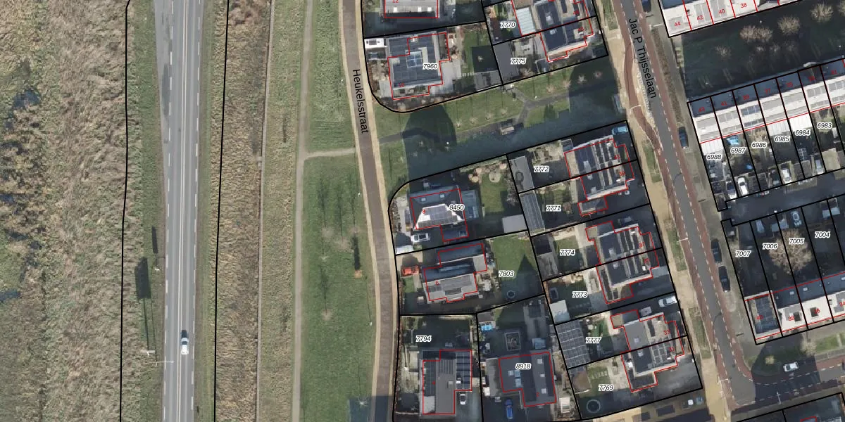 Het perceel waarop Heukelsstraat 8 staat heeft een oppervlakte van 525 m². Dit is een groot perceel. De perceeloppervlakte wordt geregistreerd door het Kadaster. Gedetailleerde informatie over de maten van dit perceel kunt u vinden in het rapport Kadastrale kaart met maatvoering van Heukelsstraat 8.