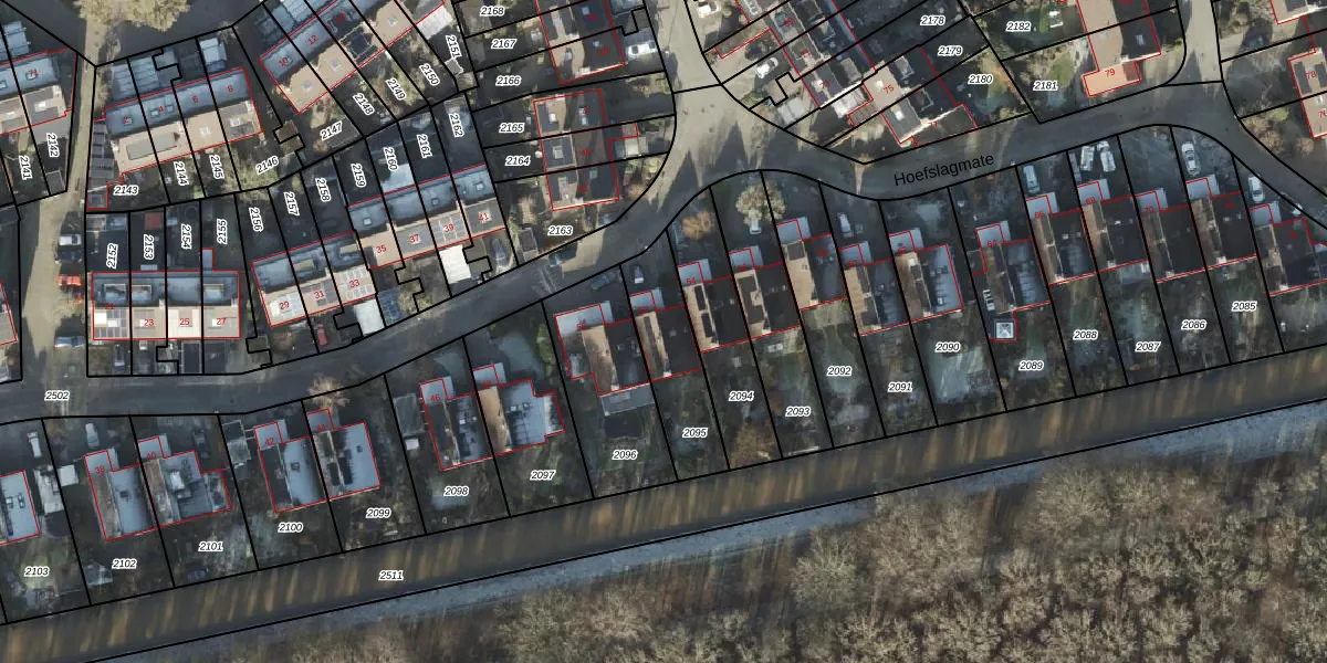 Gebruik de zoekbalk of klik op een perceel voor informatie over de adressen binnen dit perceel.
