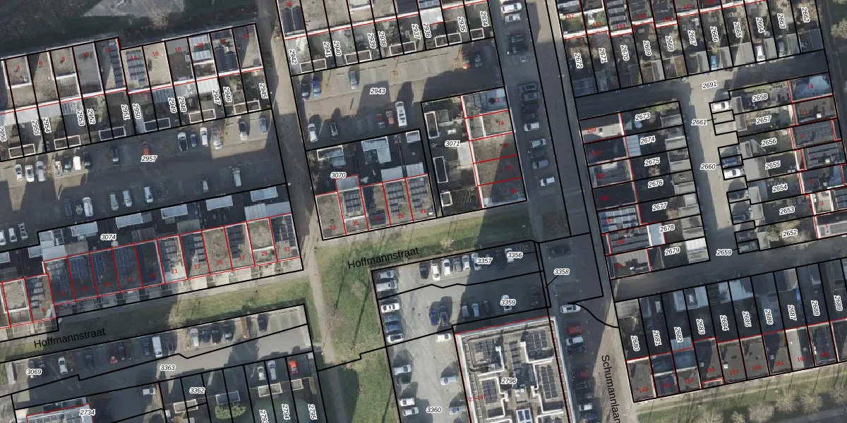 Het perceel waarop Hoffmannstraat 41 staat heeft een oppervlakte van 590 m². Dit is een groot perceel. De perceeloppervlakte wordt geregistreerd door het Kadaster. Gedetailleerde informatie over de maten van dit perceel kunt u vinden in het rapport Kadastrale kaart met maatvoering van Hoffmannstraat 41.