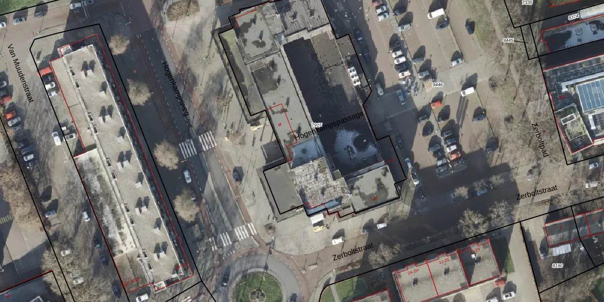 Het perceel waarop Hogenkampspassage 4 staat heeft een oppervlakte van 2692 m². Dit is een zeer groot perceel. De perceeloppervlakte wordt geregistreerd door het Kadaster. Gedetailleerde informatie over de maten van dit perceel kunt u vinden in het rapport Kadastrale kaart met maatvoering van Hogenkampspassage 4.