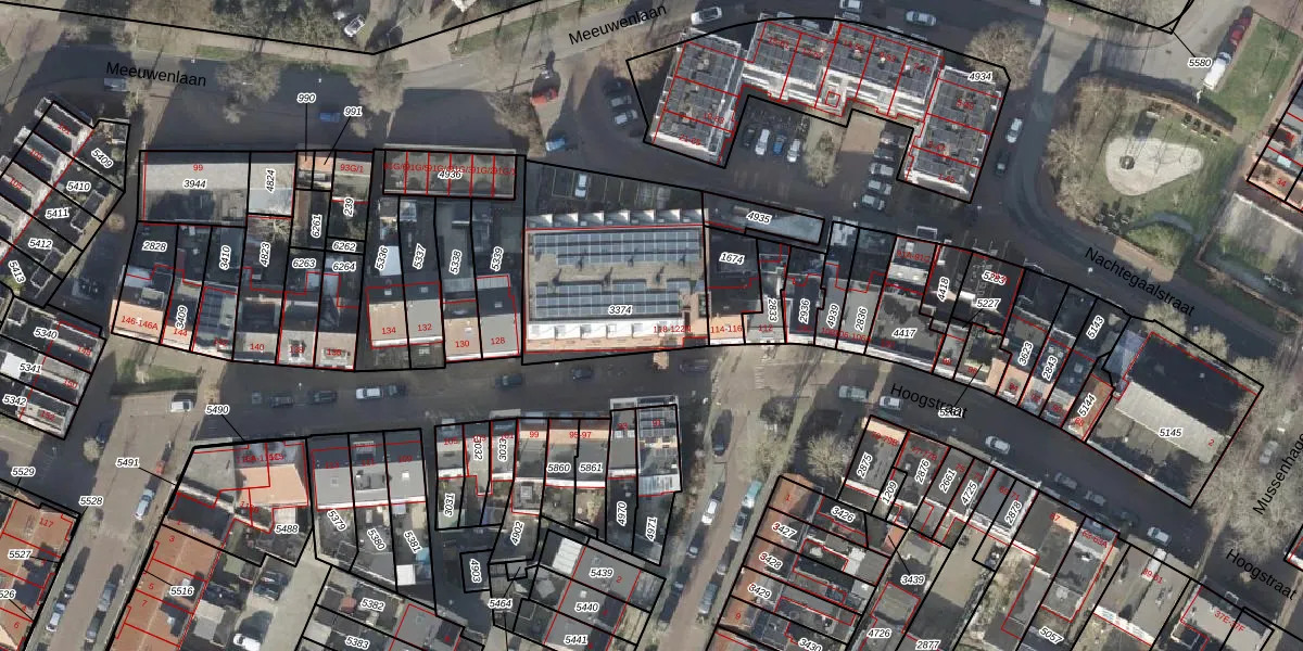 Het perceel waarop Hoogstraat 120-A staat heeft een oppervlakte van 762 m². Dit is een groot perceel. De perceeloppervlakte wordt geregistreerd door het Kadaster. Gedetailleerde informatie over de maten van dit perceel kunt u vinden in het rapport Kadastrale kaart met maatvoering van Hoogstraat 120-A.