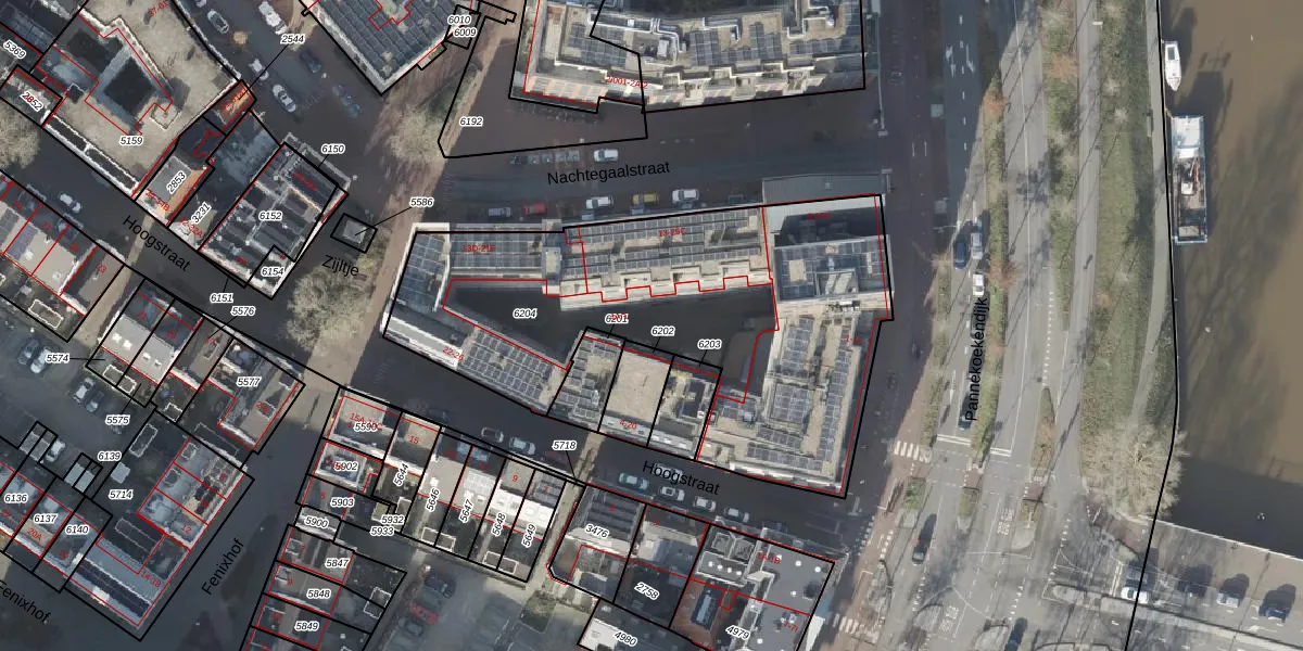 Het perceel waarop Hoogstraat 4-A-1 staat heeft een oppervlakte van 2074 m². Dit is een zeer groot perceel. De perceeloppervlakte wordt geregistreerd door het Kadaster. Gedetailleerde informatie over de maten van dit perceel kunt u vinden in het rapport Kadastrale kaart met maatvoering van Hoogstraat 4-A-1.