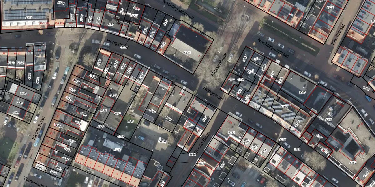 Het perceel waarop Hoogstraat 43 staat heeft een oppervlakte van 250 m². Dit is een middelgroot perceel. De perceeloppervlakte wordt geregistreerd door het Kadaster. Gedetailleerde informatie over de maten van dit perceel kunt u vinden in het rapport Kadastrale kaart met maatvoering van Hoogstraat 43.