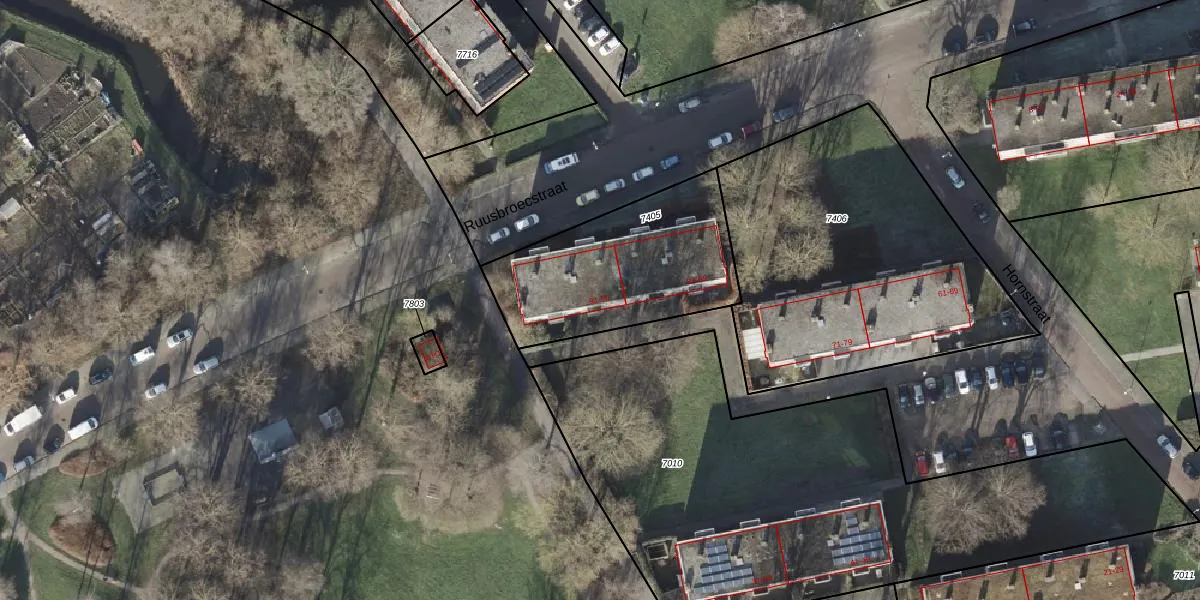 Het perceel waarop Hornstraat 91 staat heeft een oppervlakte van 750 m². Dit is een groot perceel. De perceeloppervlakte wordt geregistreerd door het Kadaster. Gedetailleerde informatie over de maten van dit perceel kunt u vinden in het rapport Kadastrale kaart met maatvoering van Hornstraat 91.