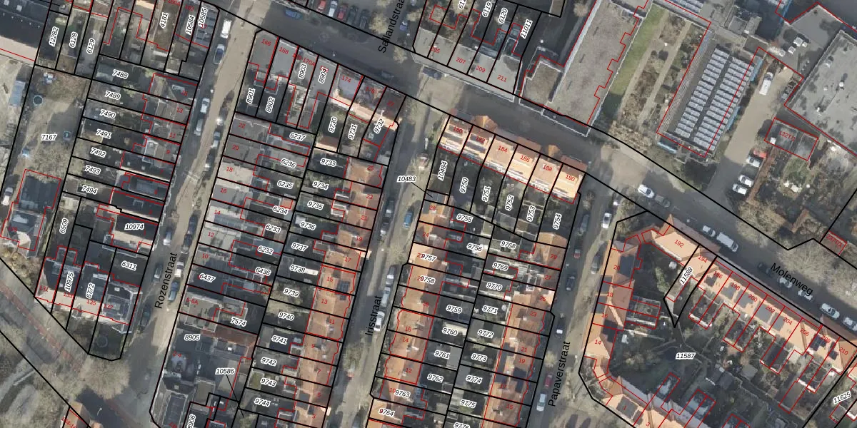 Het perceel waarop Irisstraat 26 staat heeft een oppervlakte van 85 m². Dit is een klein perceel. De perceeloppervlakte wordt geregistreerd door het Kadaster. Gedetailleerde informatie over de maten van dit perceel kunt u vinden in het rapport Kadastrale kaart met maatvoering van Irisstraat 26.