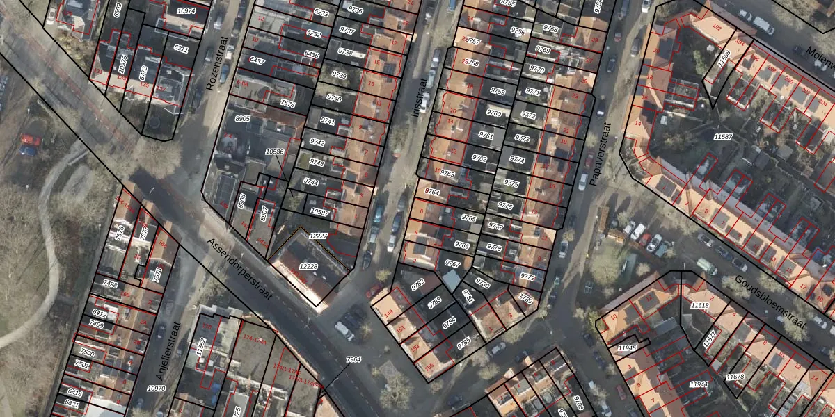 Het perceel waarop Irisstraat 6 staat heeft een oppervlakte van 88 m². Dit is een klein perceel. De perceeloppervlakte wordt geregistreerd door het Kadaster. Gedetailleerde informatie over de maten van dit perceel kunt u vinden in het rapport Kadastrale kaart met maatvoering van Irisstraat 6.