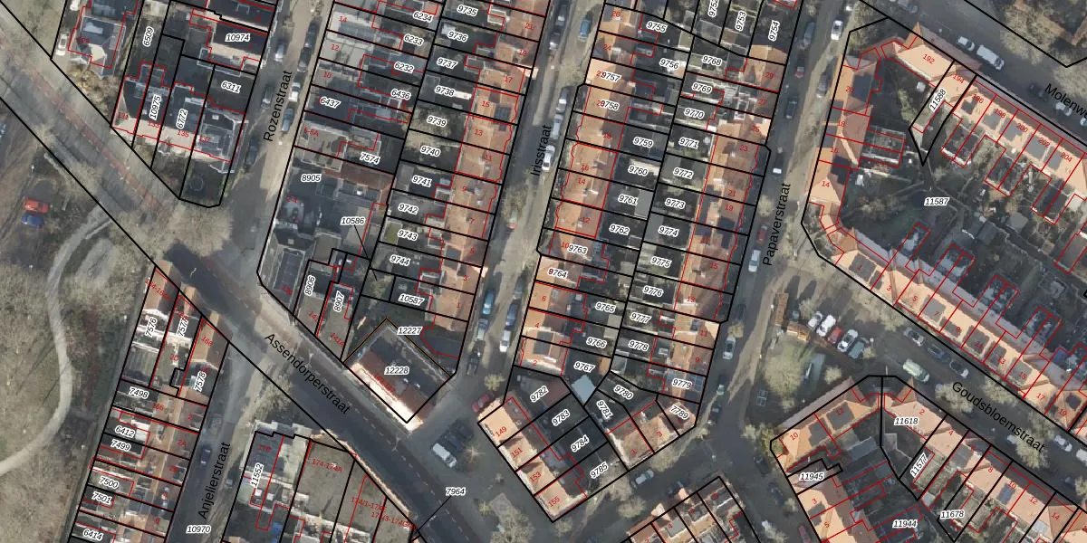 Het perceel waarop Irisstraat 8 staat heeft een oppervlakte van 88 m². Dit is een klein perceel. De perceeloppervlakte wordt geregistreerd door het Kadaster. Gedetailleerde informatie over de maten van dit perceel kunt u vinden in het rapport Kadastrale kaart met maatvoering van Irisstraat 8.