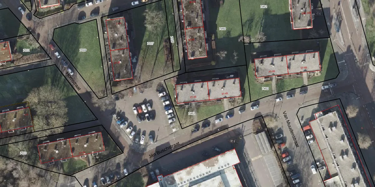 Het perceel waarop Jan Buschstraat 31 staat heeft een oppervlakte van 1025 m². Dit is een zeer groot perceel. De perceeloppervlakte wordt geregistreerd door het Kadaster. Gedetailleerde informatie over de maten van dit perceel kunt u vinden in het rapport Kadastrale kaart met maatvoering van Jan Buschstraat 31.