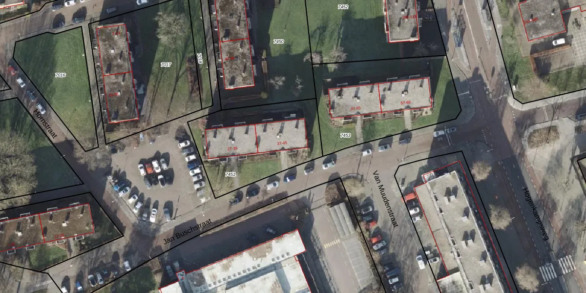 Het perceel waarop Jan Buschstraat 41 staat heeft een oppervlakte van 1025 m². Dit is een zeer groot perceel. De perceeloppervlakte wordt geregistreerd door het Kadaster. Gedetailleerde informatie over de maten van dit perceel kunt u vinden in het rapport Kadastrale kaart met maatvoering van Jan Buschstraat 41.