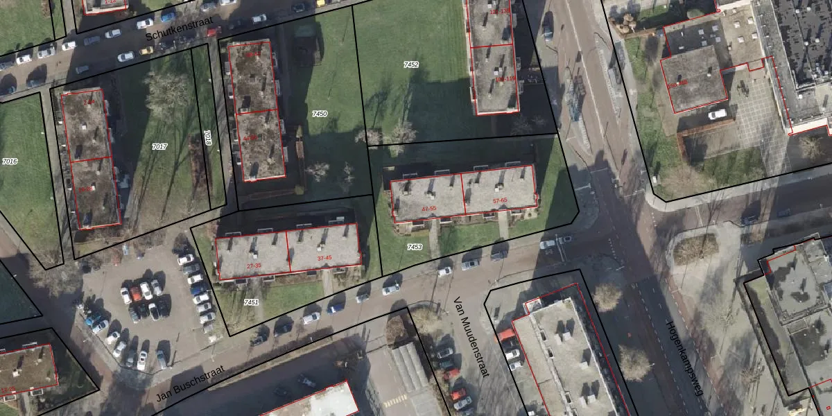 Het perceel waarop Jan Buschstraat 49 staat heeft een oppervlakte van 1255 m². Dit is een zeer groot perceel. De perceeloppervlakte wordt geregistreerd door het Kadaster. Gedetailleerde informatie over de maten van dit perceel kunt u vinden in het rapport Kadastrale kaart met maatvoering van Jan Buschstraat 49.
