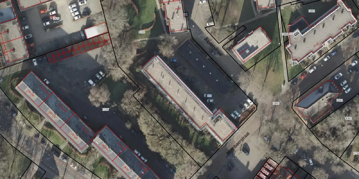 Het perceel waarop Jupiterstraat 43 staat heeft een oppervlakte van 4872 m². Dit is een zeer groot perceel. De perceeloppervlakte wordt geregistreerd door het Kadaster. Gedetailleerde informatie over de maten van dit perceel kunt u vinden in het rapport Kadastrale kaart met maatvoering van Jupiterstraat 43.