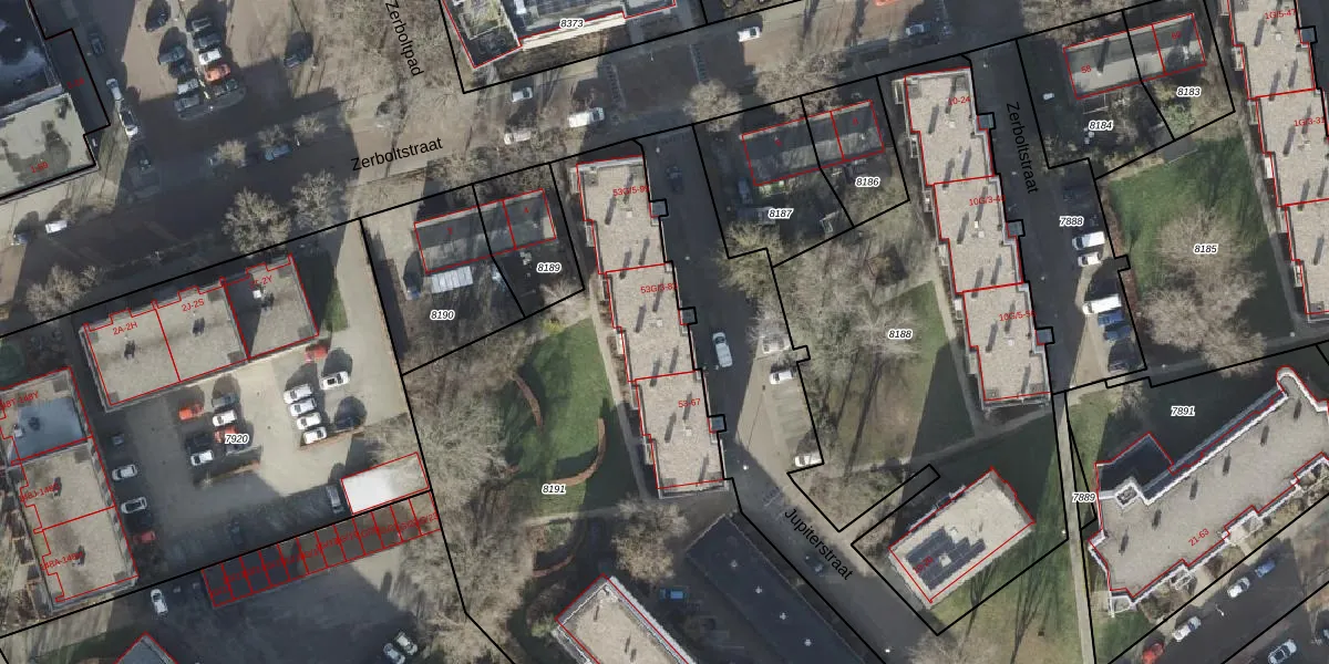 Jupiterstraat 75 is gelegen op kadastraal perceel ZLE00A8191. Deze kadastrale aanduiding is uniek en wordt gebruikt door het Kadaster om eigendomsrechten en andere zakelijke rechten vast te leggen. Het perceel maakt onderdeel uit van de kadastrale gemeente Zwolle.