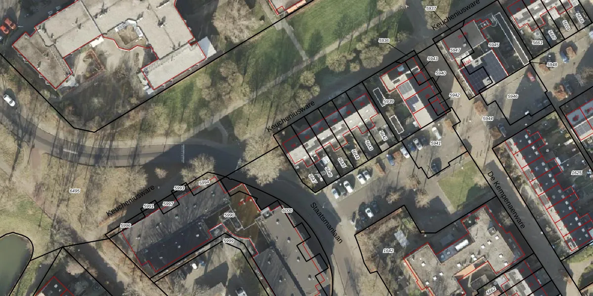 Gebruik de zoekbalk of klik op een perceel voor informatie over de adressen binnen dit perceel.