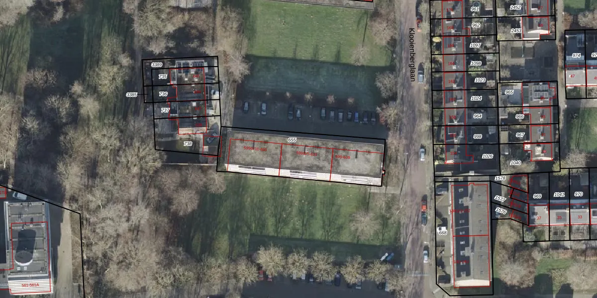 Klooienberglaan 599-G-7 is gelegen op kadastraal perceel ZLE00H655. Deze kadastrale aanduiding is uniek en wordt gebruikt door het Kadaster om eigendomsrechten en andere zakelijke rechten vast te leggen. Het perceel maakt onderdeel uit van de kadastrale gemeente Zwolle.