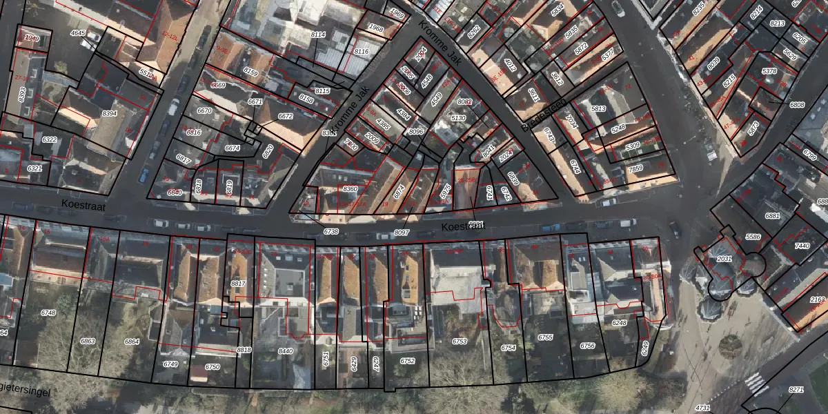 Het perceel waarop Koestraat 21 staat heeft een oppervlakte van 73 m². Dit is een klein perceel. De perceeloppervlakte wordt geregistreerd door het Kadaster. Gedetailleerde informatie over de maten van dit perceel kunt u vinden in het rapport Kadastrale kaart met maatvoering van Koestraat 21.