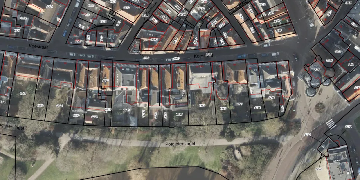 Het perceel waarop Koestraat 34-C staat heeft een oppervlakte van 308 m². Dit is een groot perceel. De perceeloppervlakte wordt geregistreerd door het Kadaster. Gedetailleerde informatie over de maten van dit perceel kunt u vinden in het rapport Kadastrale kaart met maatvoering van Koestraat 34-C.