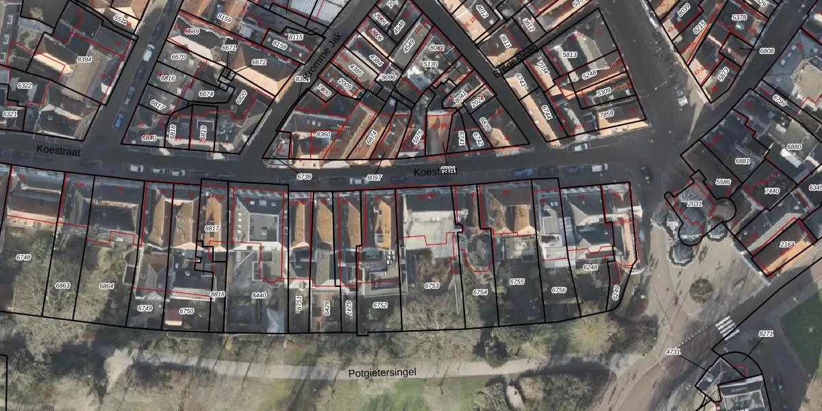 Het perceel waarop Koestraat 36-D staat heeft een oppervlakte van 523 m². Dit is een groot perceel. De perceeloppervlakte wordt geregistreerd door het Kadaster. Gedetailleerde informatie over de maten van dit perceel kunt u vinden in het rapport Kadastrale kaart met maatvoering van Koestraat 36-D.