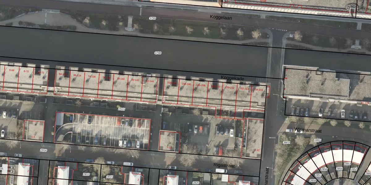 Het perceel waarop Koggekade 186 staat heeft een oppervlakte van 6925 m². Dit is een zeer groot perceel. De perceeloppervlakte wordt geregistreerd door het Kadaster. Gedetailleerde informatie over de maten van dit perceel kunt u vinden in het rapport Kadastrale kaart met maatvoering van Koggekade 186.