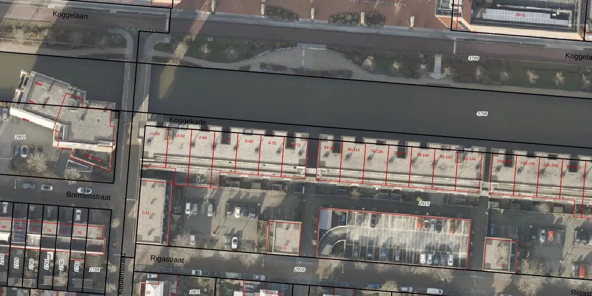 Het perceel waarop Koggekade 24 staat heeft een oppervlakte van 6925 m². Dit is een zeer groot perceel. De perceeloppervlakte wordt geregistreerd door het Kadaster. Gedetailleerde informatie over de maten van dit perceel kunt u vinden in het rapport Kadastrale kaart met maatvoering van Koggekade 24.