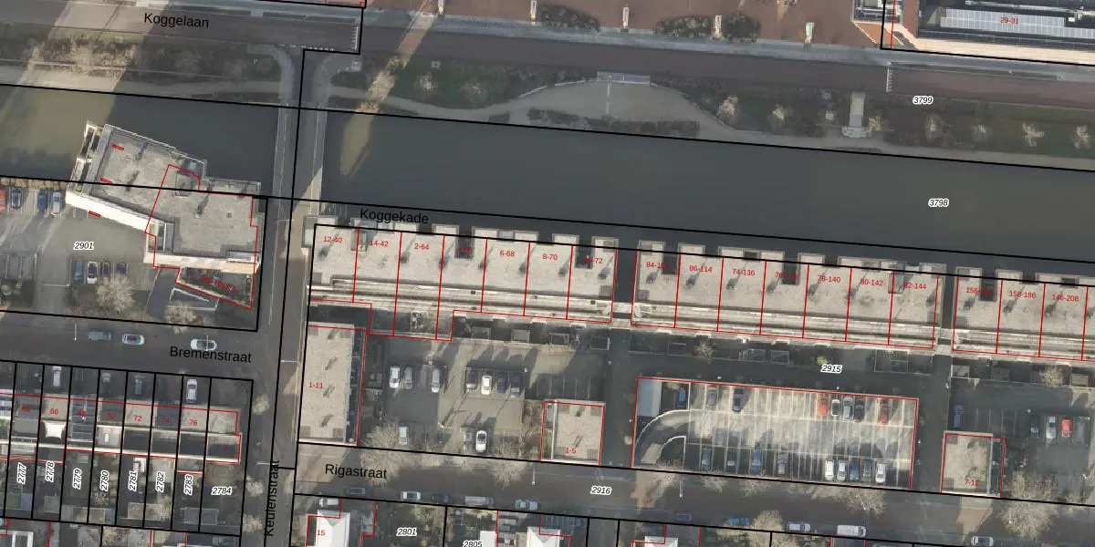 Koggekade 36 is gelegen op kadastraal perceel ZLE00P2915. Deze kadastrale aanduiding is uniek en wordt gebruikt door het Kadaster om eigendomsrechten en andere zakelijke rechten vast te leggen. Het perceel maakt onderdeel uit van de kadastrale gemeente Zwolle.