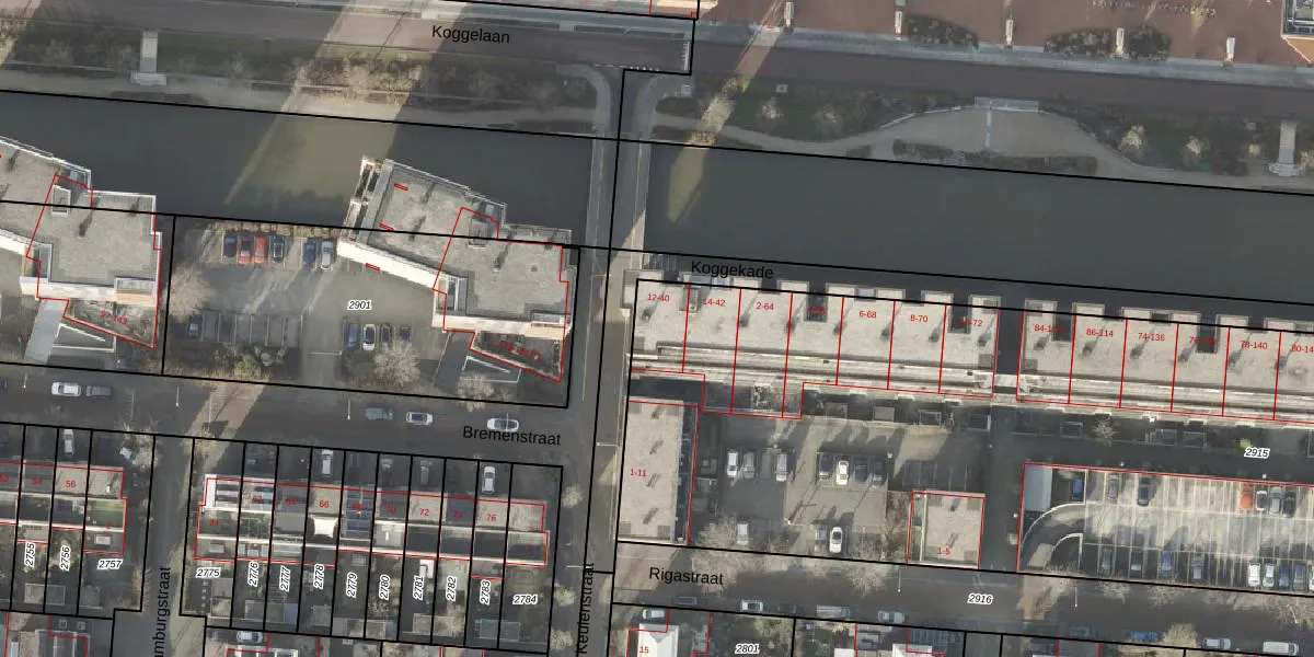 Het perceel waarop Koggekade 40 staat heeft een oppervlakte van 6925 m². Dit is een zeer groot perceel. De perceeloppervlakte wordt geregistreerd door het Kadaster. Gedetailleerde informatie over de maten van dit perceel kunt u vinden in het rapport Kadastrale kaart met maatvoering van Koggekade 40.
