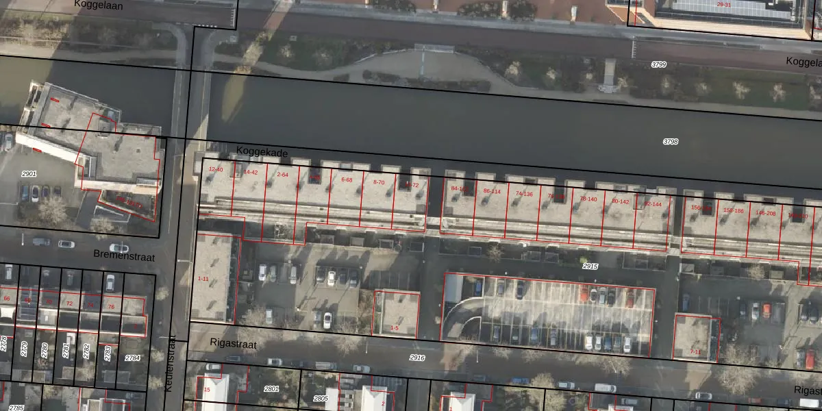 Het perceel waarop Koggekade 52 staat heeft een oppervlakte van 6925 m². Dit is een zeer groot perceel. De perceeloppervlakte wordt geregistreerd door het Kadaster. Gedetailleerde informatie over de maten van dit perceel kunt u vinden in het rapport Kadastrale kaart met maatvoering van Koggekade 52.