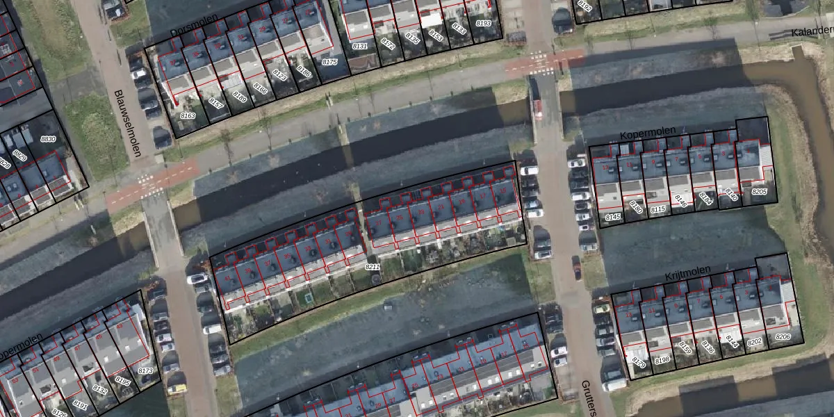 Het perceel waarop Kopermolen 23 staat heeft een oppervlakte van 1565 m². Dit is een zeer groot perceel. De perceeloppervlakte wordt geregistreerd door het Kadaster. Gedetailleerde informatie over de maten van dit perceel kunt u vinden in het rapport Kadastrale kaart met maatvoering van Kopermolen 23.