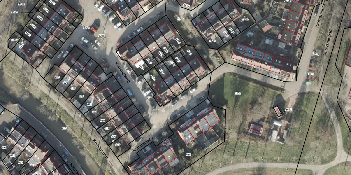 Gebruik de zoekbalk of klik op een perceel voor informatie over de adressen binnen dit perceel.