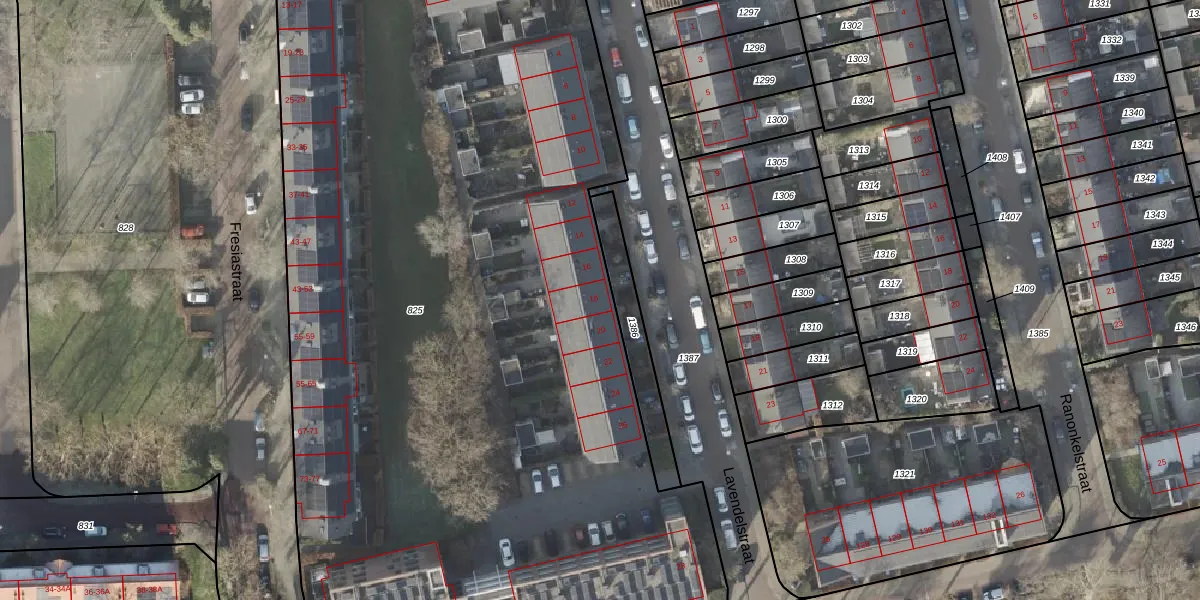 Lavendelstraat 18 is gelegen op kadastraal perceel ZLE00C825. Deze kadastrale aanduiding is uniek en wordt gebruikt door het Kadaster om eigendomsrechten en andere zakelijke rechten vast te leggen. Het perceel maakt onderdeel uit van de kadastrale gemeente Zwolle.