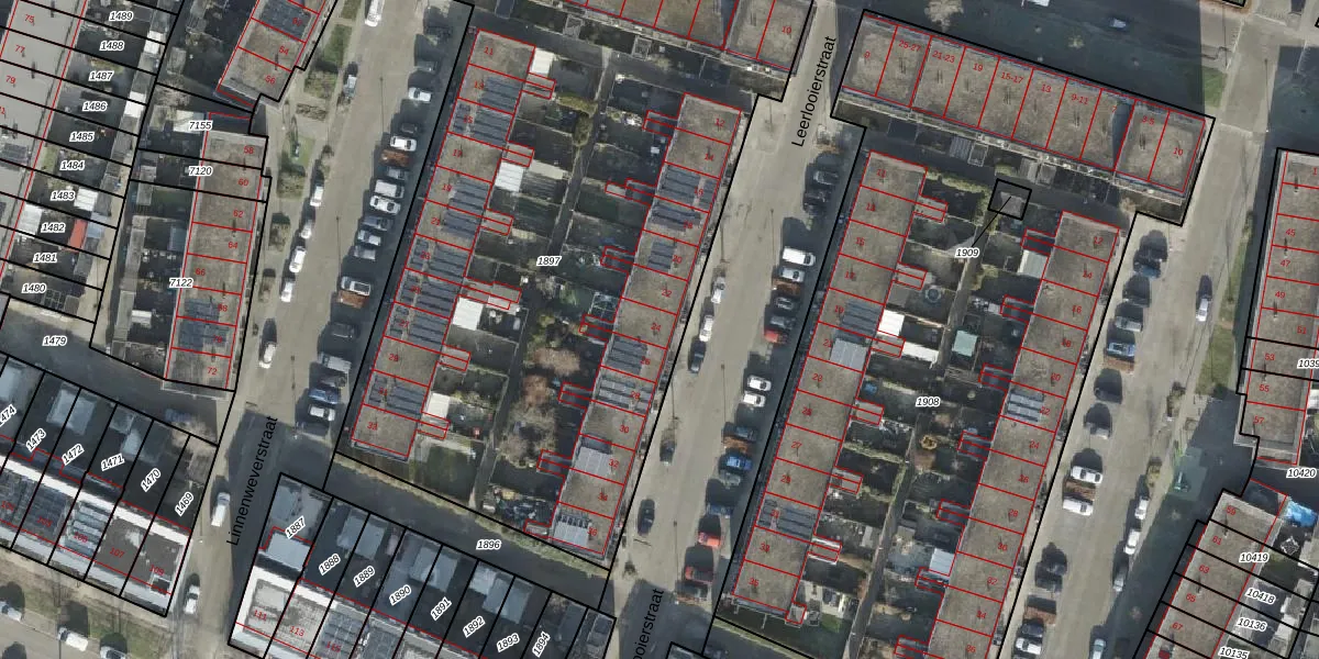 Het perceel waarop Leerlooierstraat 24 staat heeft een oppervlakte van 4264 m². Dit is een zeer groot perceel. De perceeloppervlakte wordt geregistreerd door het Kadaster. Gedetailleerde informatie over de maten van dit perceel kunt u vinden in het rapport Kadastrale kaart met maatvoering van Leerlooierstraat 24.