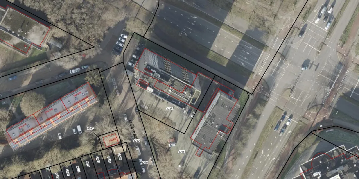 Het perceel waarop Leliestraat 230 staat heeft een oppervlakte van 1655 m². Dit is een zeer groot perceel. De perceeloppervlakte wordt geregistreerd door het Kadaster. Gedetailleerde informatie over de maten van dit perceel kunt u vinden in het rapport Kadastrale kaart met maatvoering van Leliestraat 230.