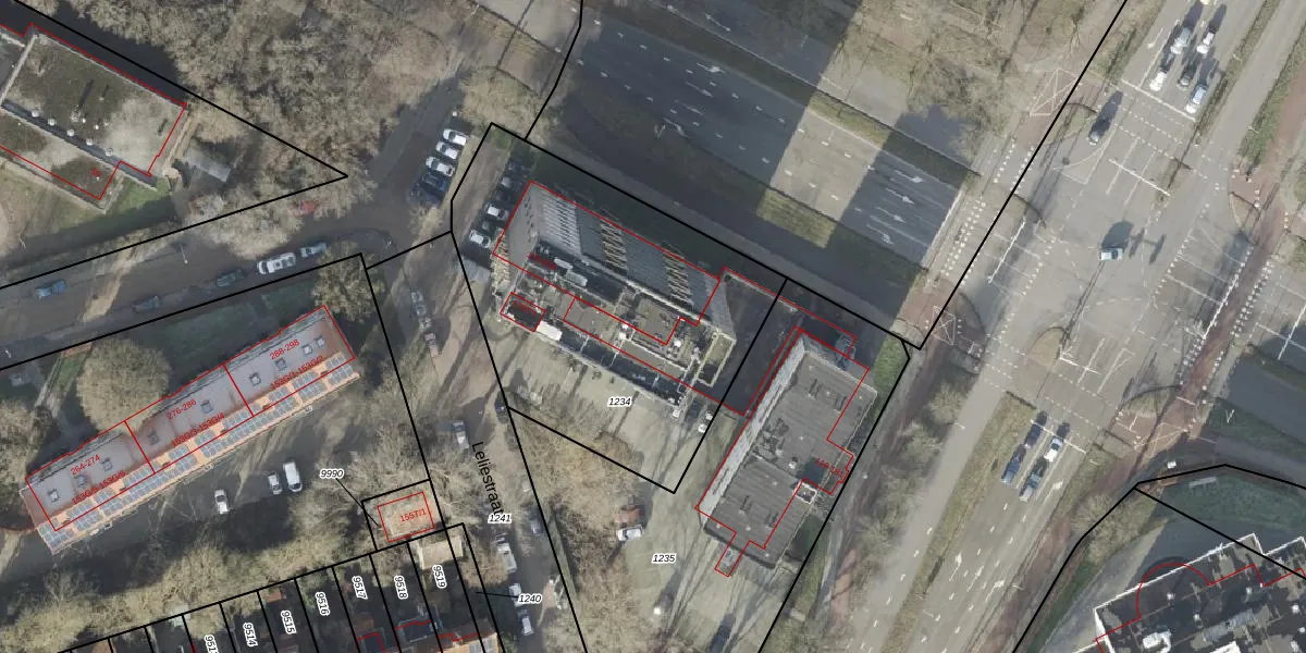 Het perceel waarop Leliestraat 266 staat heeft een oppervlakte van 1655 m². Dit is een zeer groot perceel. De perceeloppervlakte wordt geregistreerd door het Kadaster. Gedetailleerde informatie over de maten van dit perceel kunt u vinden in het rapport Kadastrale kaart met maatvoering van Leliestraat 266.