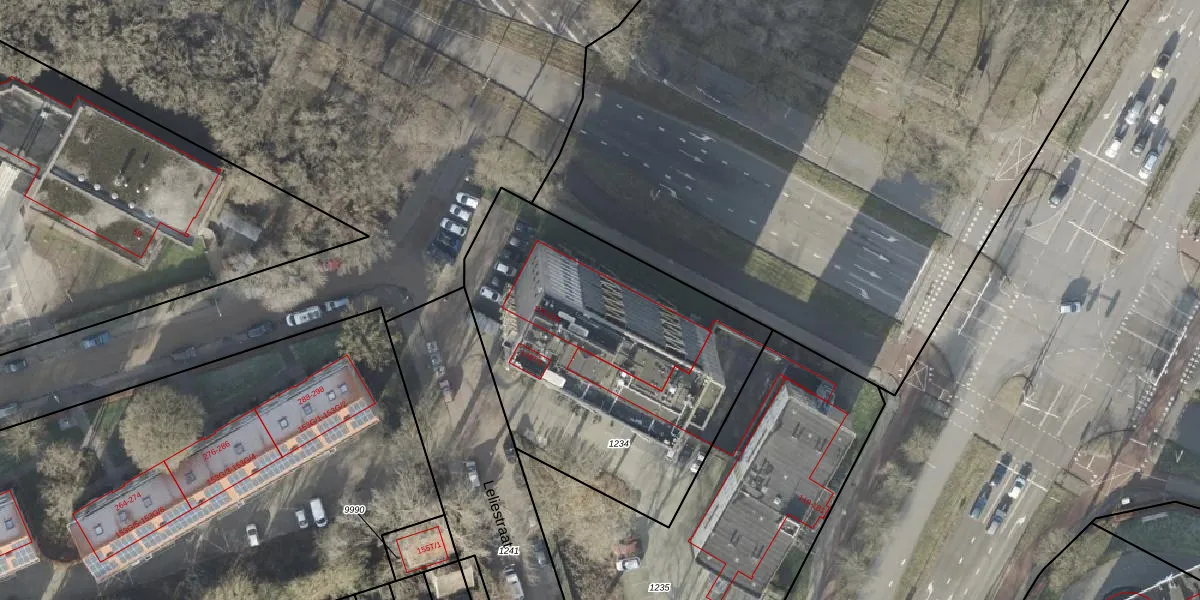 Het perceel waarop Leliestraat 326 staat heeft een oppervlakte van 1655 m². Dit is een zeer groot perceel. De perceeloppervlakte wordt geregistreerd door het Kadaster. Gedetailleerde informatie over de maten van dit perceel kunt u vinden in het rapport Kadastrale kaart met maatvoering van Leliestraat 326.