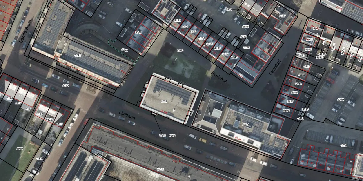 Het perceel waarop Lijnbaan 14-C staat heeft een oppervlakte van 521 m². Dit is een groot perceel. De perceeloppervlakte wordt geregistreerd door het Kadaster. Gedetailleerde informatie over de maten van dit perceel kunt u vinden in het rapport Kadastrale kaart met maatvoering van Lijnbaan 14-C.