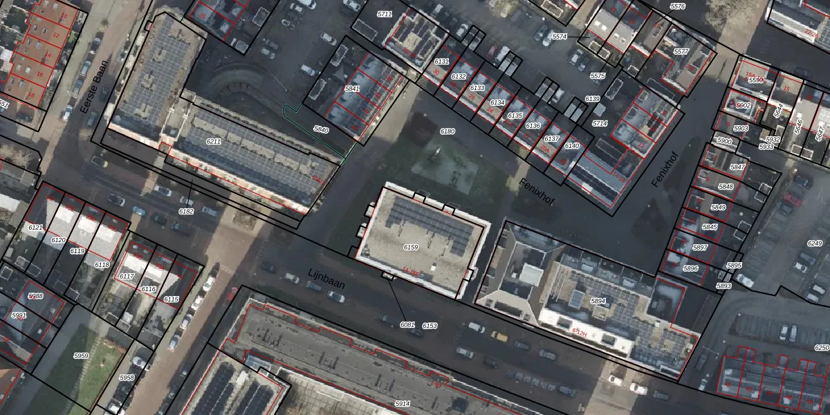 Het perceel waarop Lijnbaan 14-H staat heeft een oppervlakte van 521 m². Dit is een groot perceel. De perceeloppervlakte wordt geregistreerd door het Kadaster. Gedetailleerde informatie over de maten van dit perceel kunt u vinden in het rapport Kadastrale kaart met maatvoering van Lijnbaan 14-H.