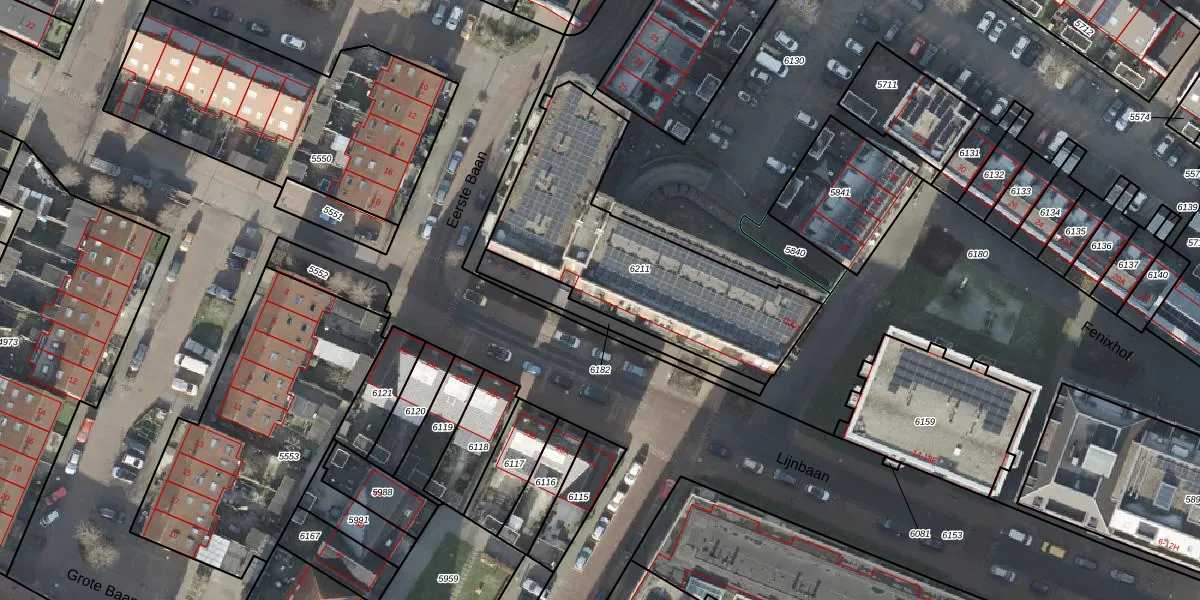 Het perceel waarop Lijnbaan 26-A staat heeft een oppervlakte van 1098 m². Dit is een zeer groot perceel. De perceeloppervlakte wordt geregistreerd door het Kadaster. Gedetailleerde informatie over de maten van dit perceel kunt u vinden in het rapport Kadastrale kaart met maatvoering van Lijnbaan 26-A.