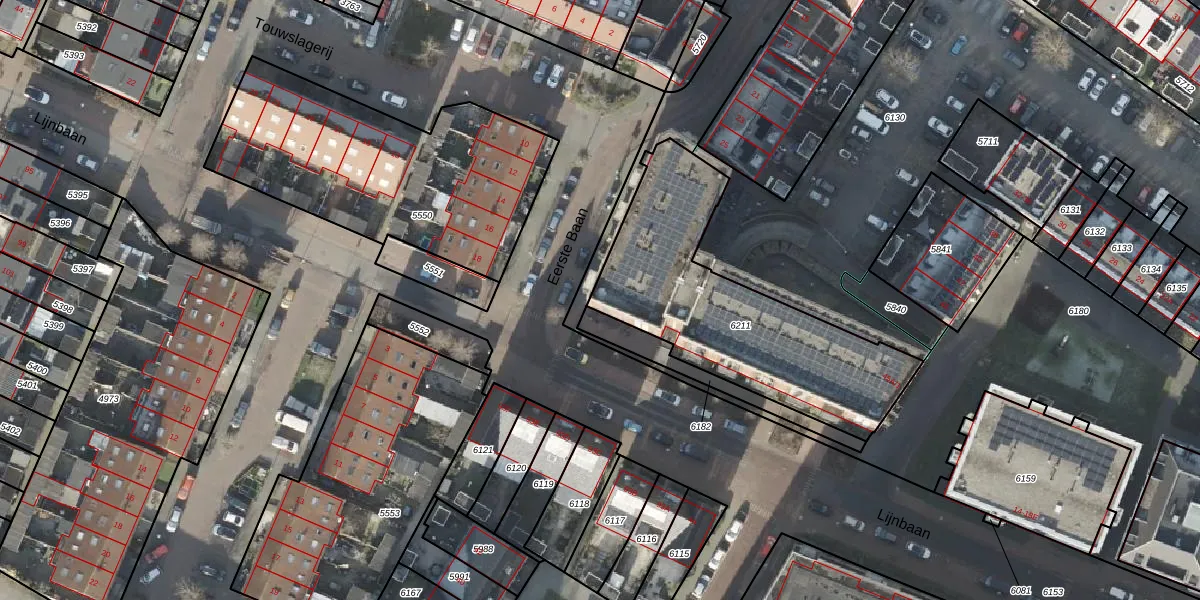 Het perceel waarop Lijnbaan 32-A staat heeft een oppervlakte van 1098 m². Dit is een zeer groot perceel. De perceeloppervlakte wordt geregistreerd door het Kadaster. Gedetailleerde informatie over de maten van dit perceel kunt u vinden in het rapport Kadastrale kaart met maatvoering van Lijnbaan 32-A.