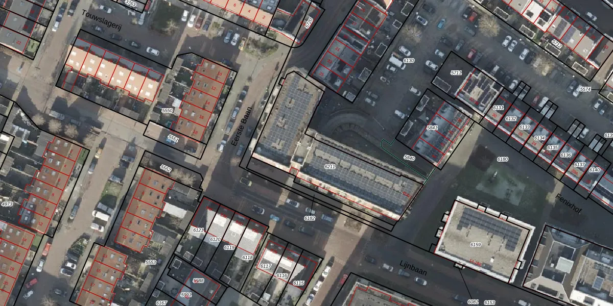 Het perceel waarop Lijnbaan 36 staat heeft een oppervlakte van 1098 m². Dit is een zeer groot perceel. De perceeloppervlakte wordt geregistreerd door het Kadaster. Gedetailleerde informatie over de maten van dit perceel kunt u vinden in het rapport Kadastrale kaart met maatvoering van Lijnbaan 36.