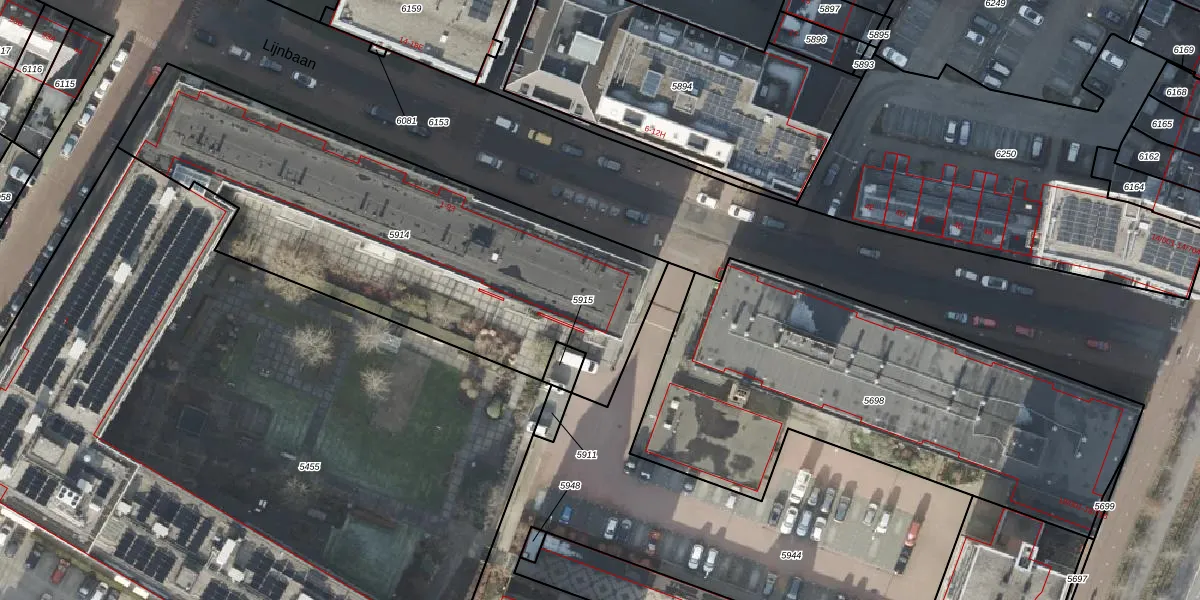 Het perceel waarop Lijnbaan 55 staat heeft een oppervlakte van 2130 m². Dit is een zeer groot perceel. De perceeloppervlakte wordt geregistreerd door het Kadaster. Gedetailleerde informatie over de maten van dit perceel kunt u vinden in het rapport Kadastrale kaart met maatvoering van Lijnbaan 55.