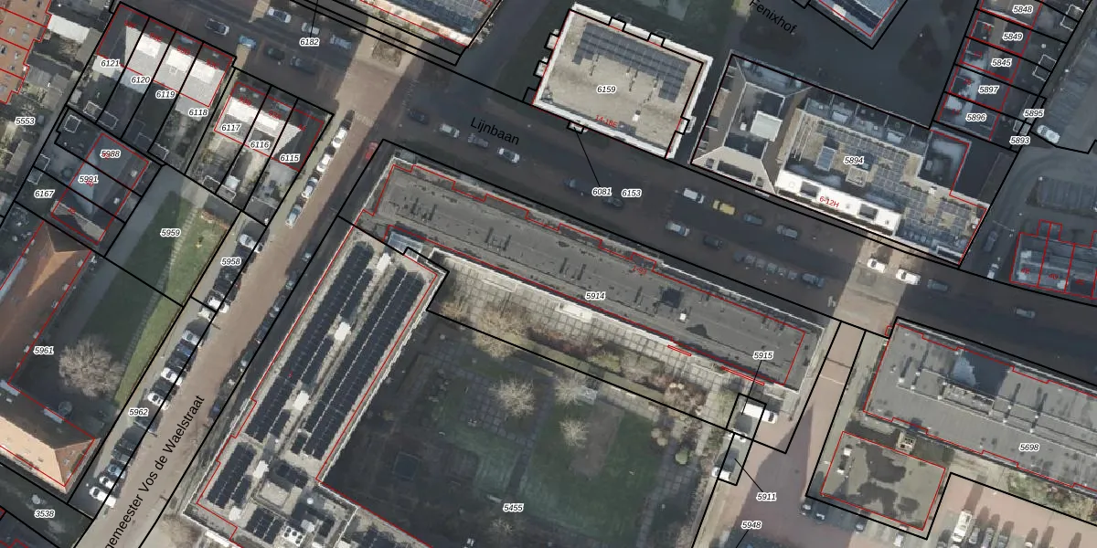 Het perceel waarop Lijnbaan 85 staat heeft een oppervlakte van 2130 m². Dit is een zeer groot perceel. De perceeloppervlakte wordt geregistreerd door het Kadaster. Gedetailleerde informatie over de maten van dit perceel kunt u vinden in het rapport Kadastrale kaart met maatvoering van Lijnbaan 85.