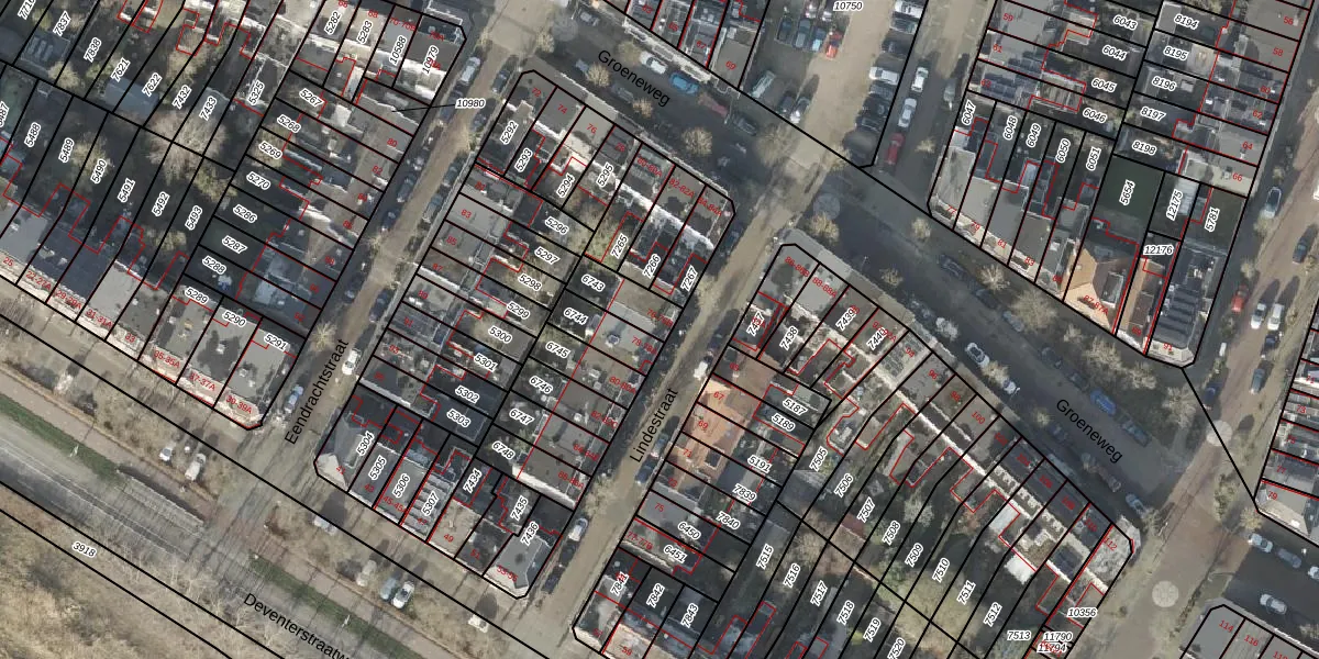Het perceel waarop Lindestraat 76-A staat heeft een oppervlakte van 102 m². Dit is een middelgroot perceel. De perceeloppervlakte wordt geregistreerd door het Kadaster. Gedetailleerde informatie over de maten van dit perceel kunt u vinden in het rapport Kadastrale kaart met maatvoering van Lindestraat 76-A.