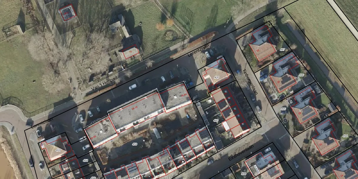 Het perceel waarop Lorentzlaan 82 staat heeft een oppervlakte van 2910 m². Dit is een zeer groot perceel. De perceeloppervlakte wordt geregistreerd door het Kadaster. Gedetailleerde informatie over de maten van dit perceel kunt u vinden in het rapport Kadastrale kaart met maatvoering van Lorentzlaan 82.