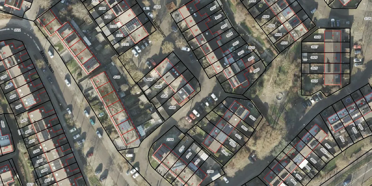 Gebruik de zoekbalk of klik op een perceel voor informatie over de adressen binnen dit perceel.