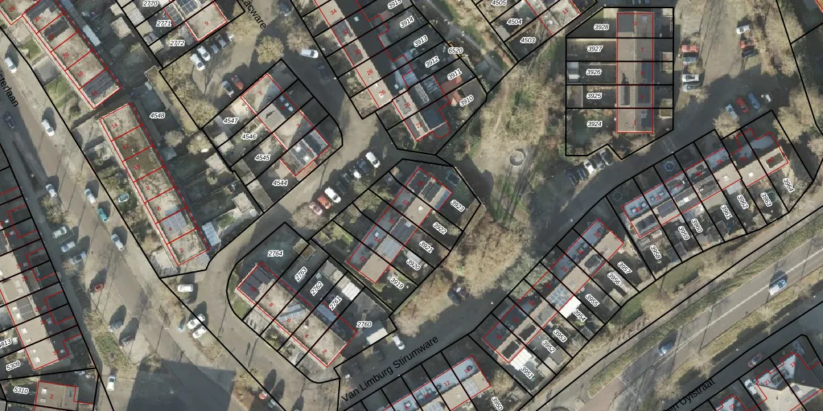Gebruik de zoekbalk of klik op een perceel voor informatie over de adressen binnen dit perceel.