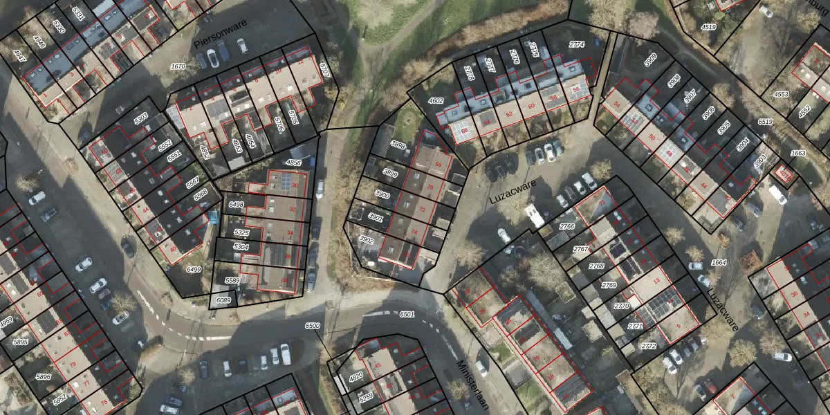 Gebruik de zoekbalk of klik op een perceel voor informatie over de adressen binnen dit perceel.