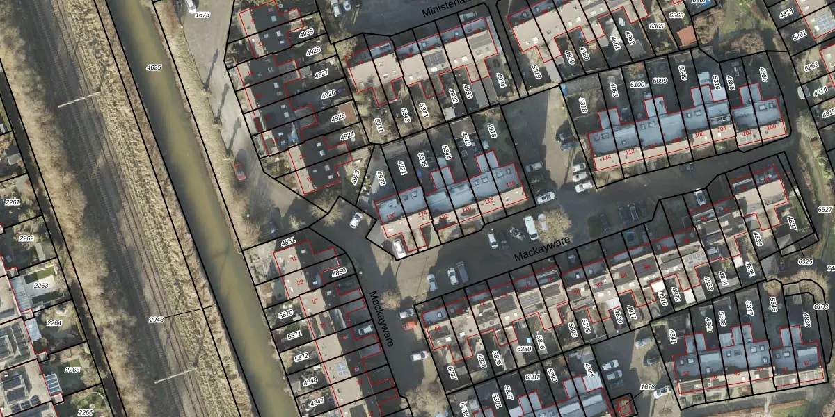 Gebruik de zoekbalk of klik op een perceel voor informatie over de adressen binnen dit perceel.