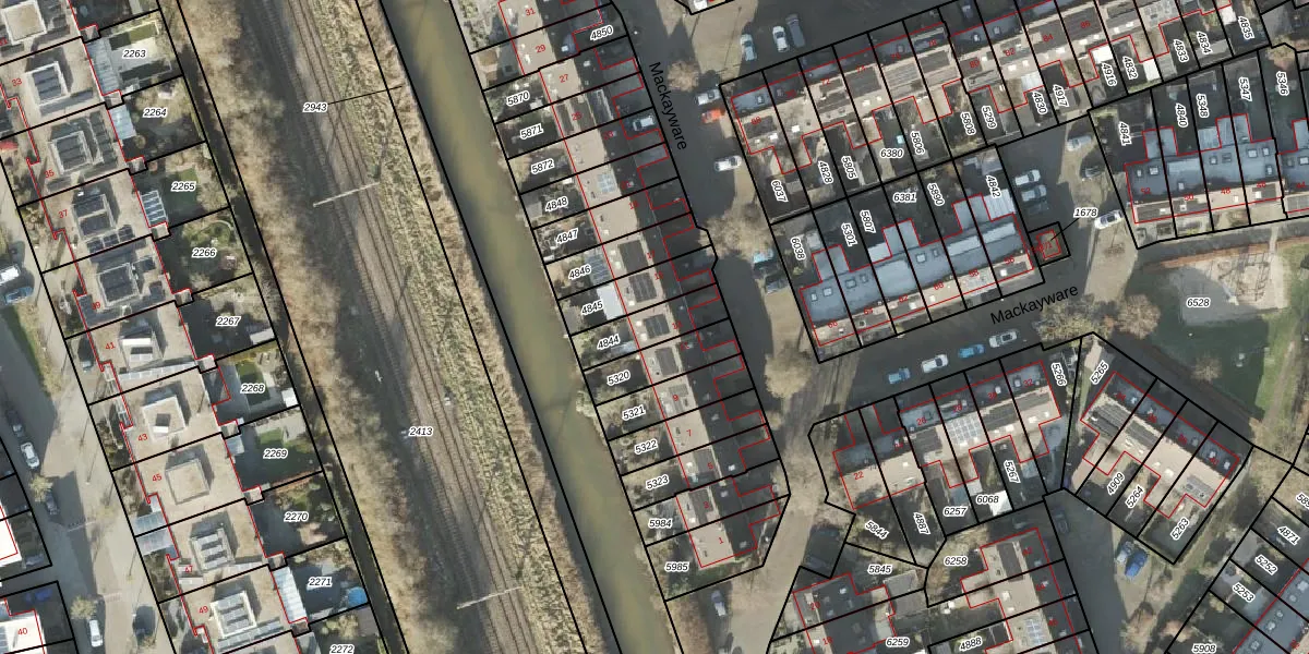 Het perceel waarop Mackayware 13 staat heeft een oppervlakte van 136 m². Dit is een middelgroot perceel. De perceeloppervlakte wordt geregistreerd door het Kadaster. Gedetailleerde informatie over de maten van dit perceel kunt u vinden in het rapport Kadastrale kaart met maatvoering van Mackayware 13.